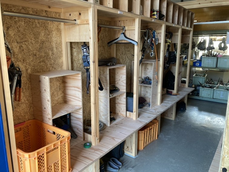 更衣室・道具の整理整頓 造作品のため 現場の皆様が使いやすい形に仕上げることができています。