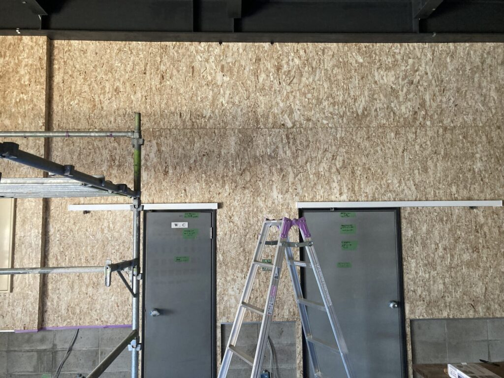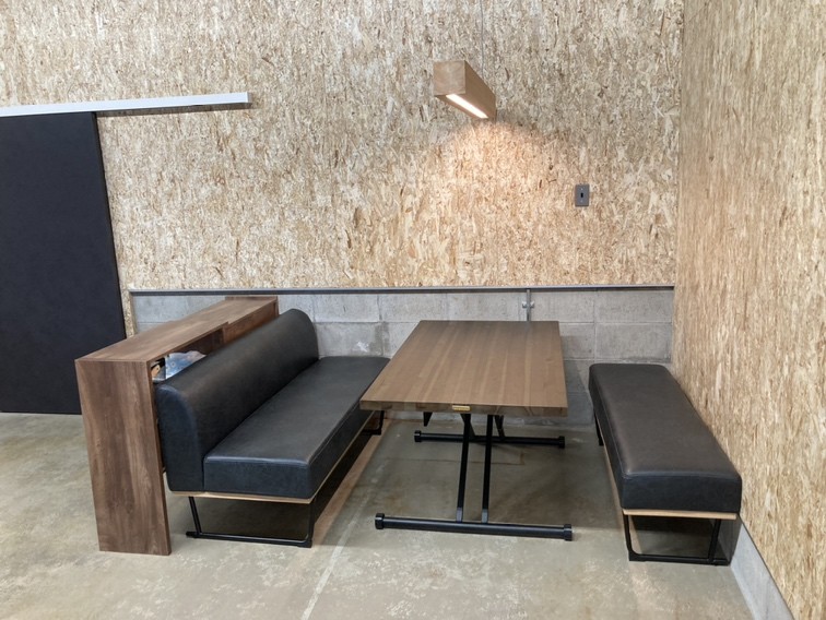 壁面は社長のイメージする雰囲気を出すためにOSBで仕上げました。
