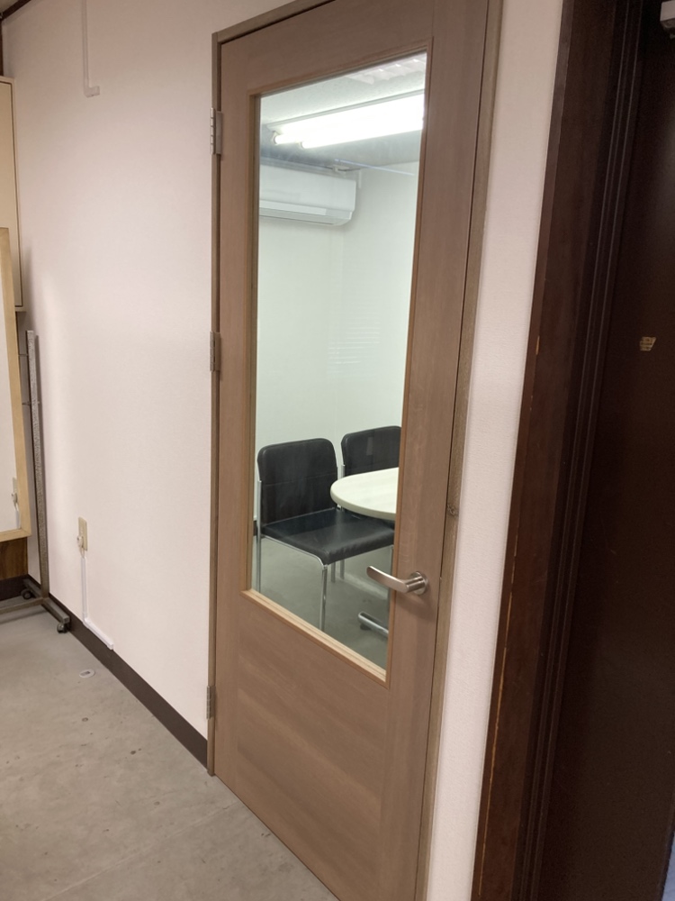 - 「扉」の設置で物理的に遮音 もともとオープンだった入り口に、気密性の高い建具(ドア)を設置。空間を物理的に分離することで、修理音やWeb会議の声が外に漏れるのを防ぎ、プライバシーを確保しました。